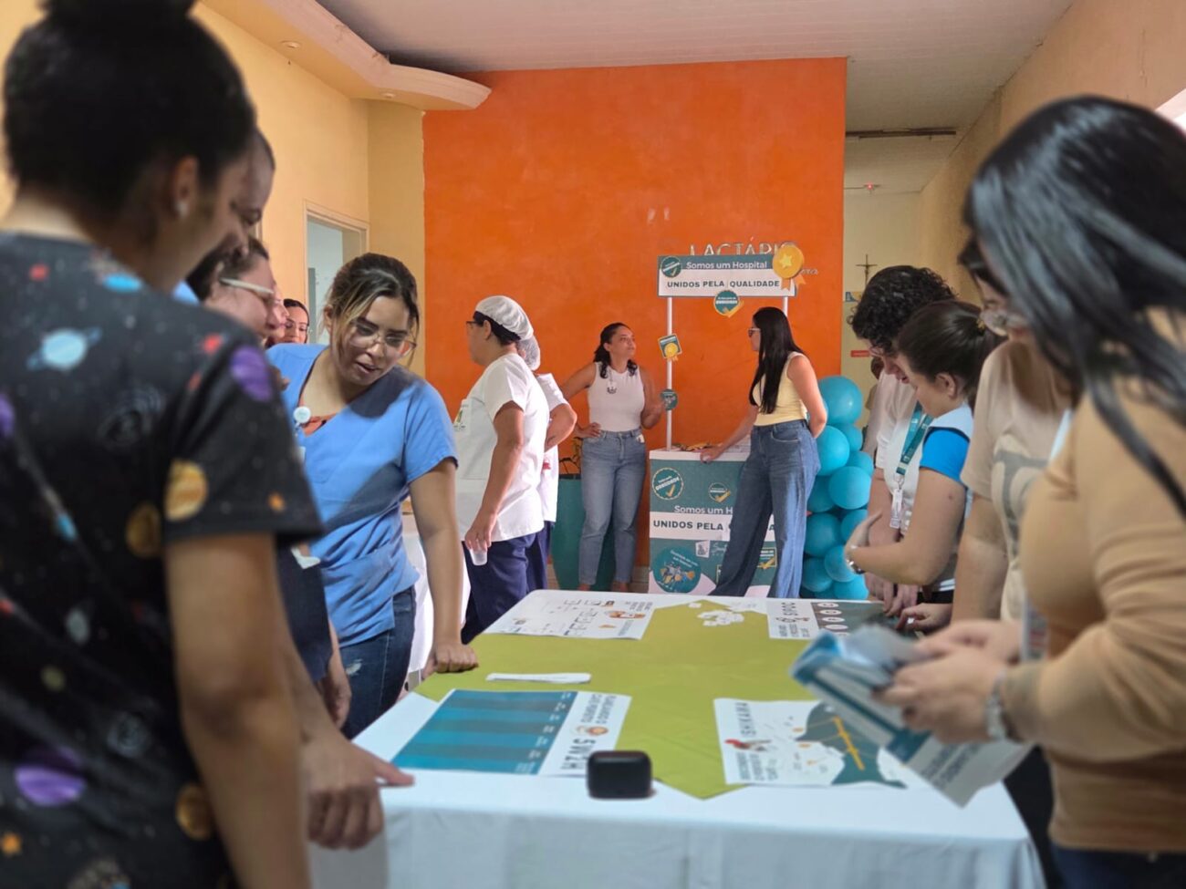 Nos dias 12 e 13, o hall do Refeitório se tornou um espaço de dinâmicas e saberes na Semana da Qualidade. Durante o evento, colaboradores de diferentes setores conheceram mais sobre o Núcleo de Segurança do Paciente, ações que fortalecem uma cultura de cuidado, confiança e excelência em cada atendimento; além do papel das Comissões, dos processos, técnicas, sistemas e ferramentas utilizadas na instituição. Todas as atividades foram conduzidas de forma lúdica e interativa.